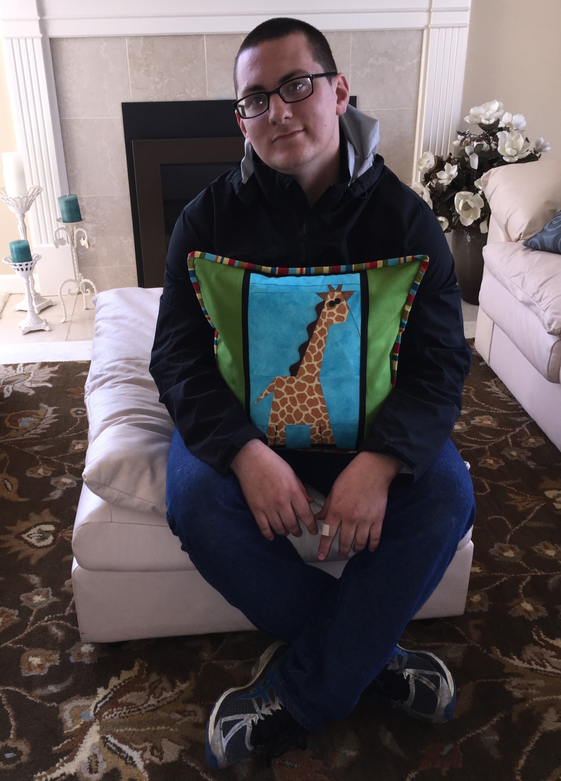 Here is my son, Brady, holding a cute pillow. Who doesn’t love giraffes!