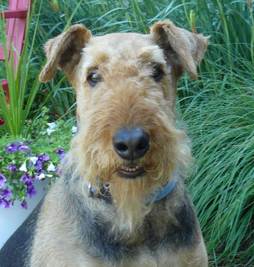 The Airedale is “Guinness” and the owner is Heidi Dronchi.