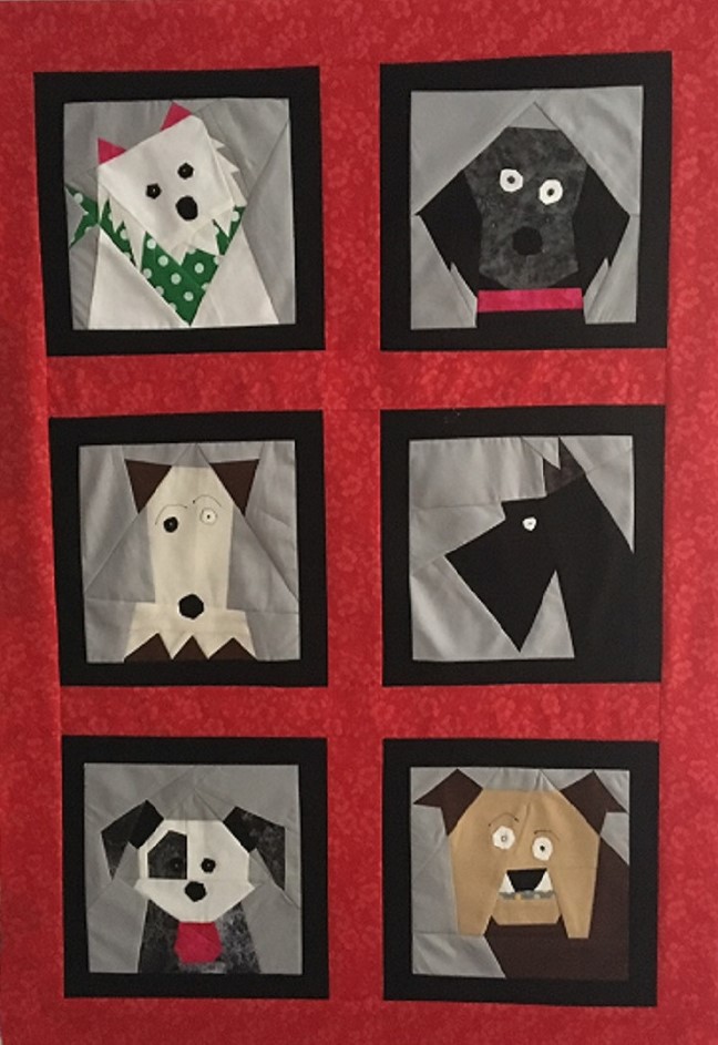 Here is an adorable version of my “Dogs Only” paper pieced pattern done by Dave.