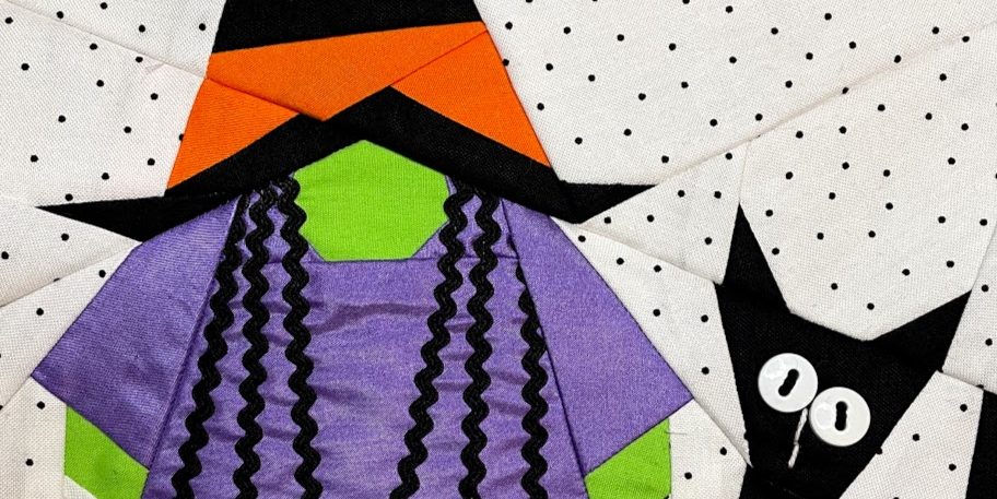 BLACK CAT GNOME was the most fun to piece! But I honestly love them all. All 12 Halloween blocks are also available sold separately for your smaller holiday projects.