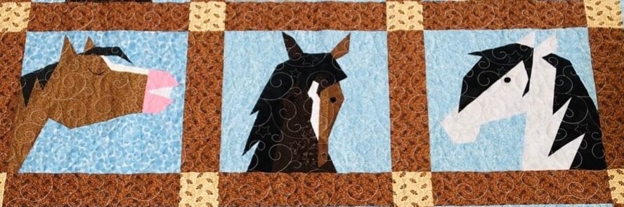 The COZY HORSES pattern includes all 3 paper pieced horse patterns and directions for the wall hanging.