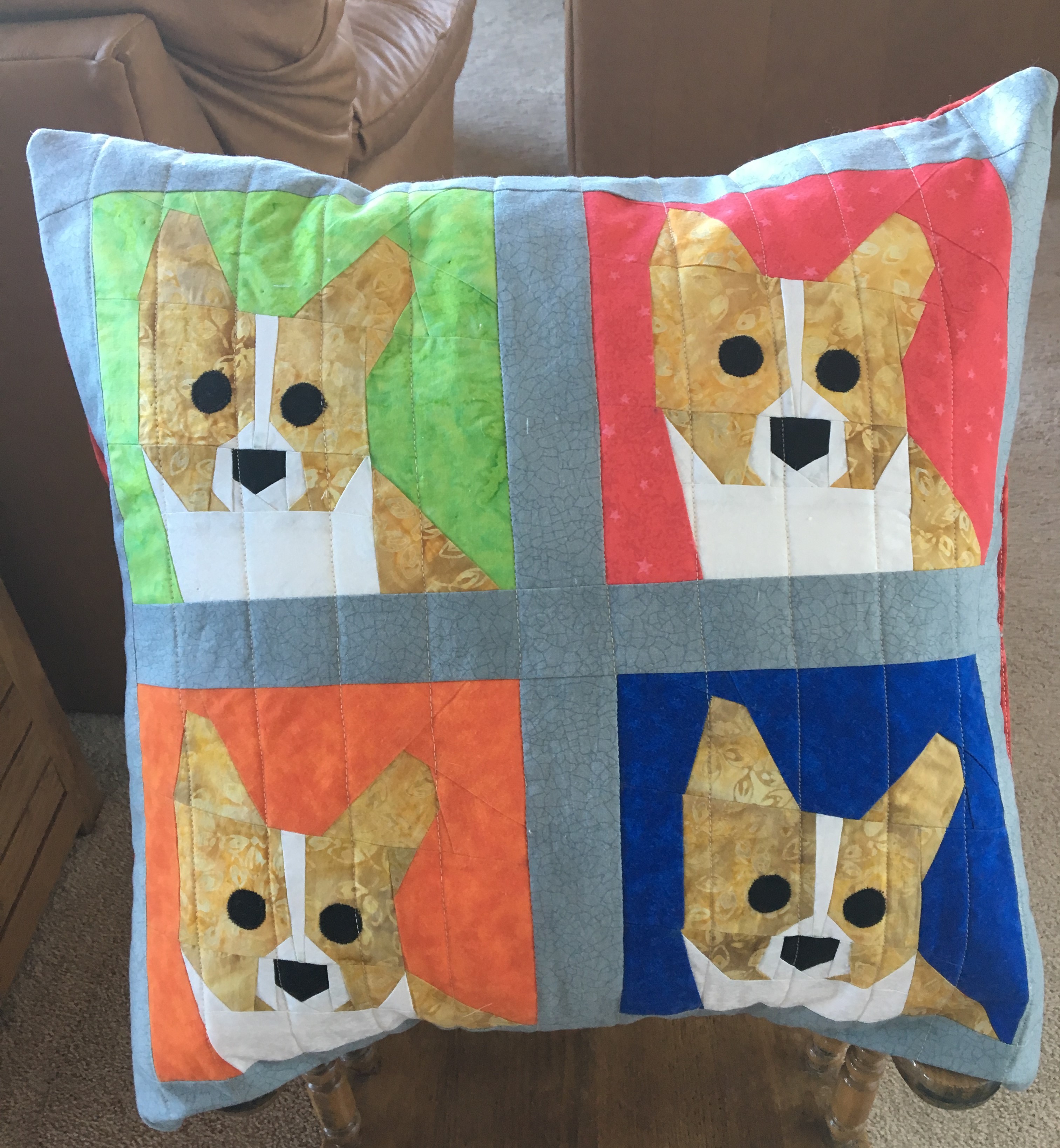 Here is Kelsey’s awesome creation! She made a great rendition of an “Andy Warhol” pillow, using my CORGI pattern. I LOVE this pillow.