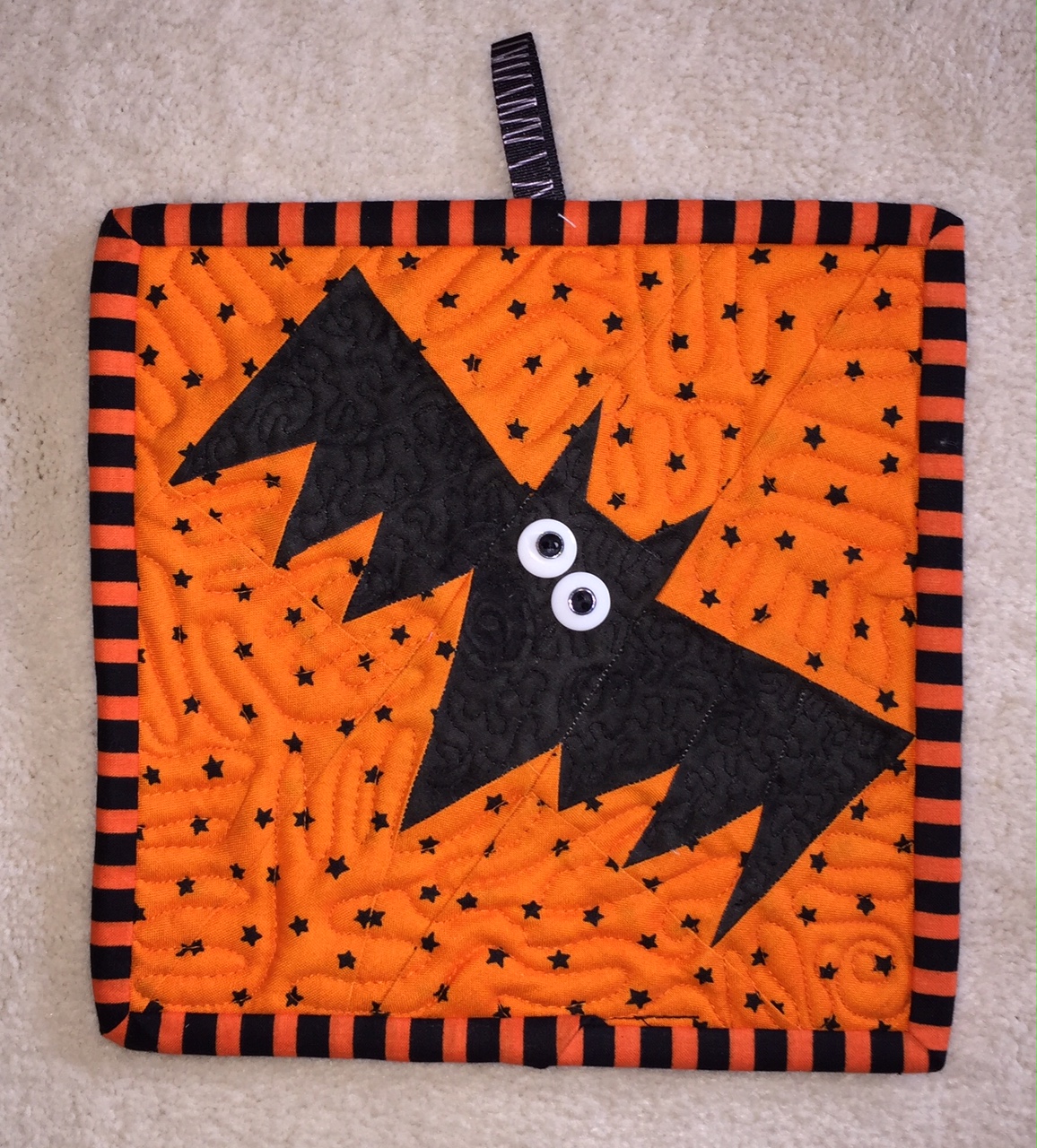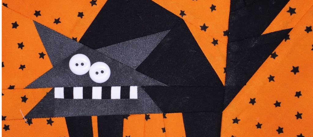 The “Boo Collection” is a table runner/potholder pattern which includes 6 different Halloween blocks. I’ll share more Halloween block photos next time, including that adorable “Skat Cat” in my featured image. Stay tuned…