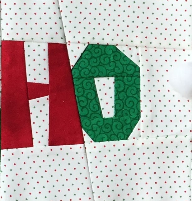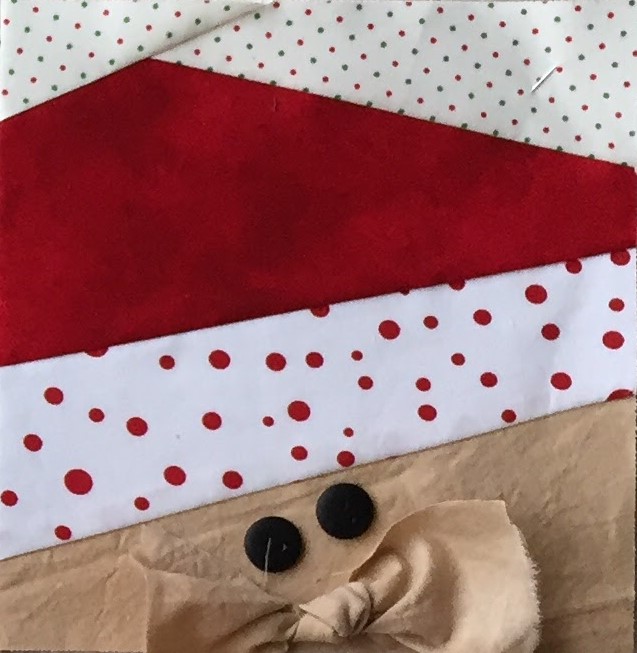 Each row is designed with a specific Christmas carol in mind. My row was inspired by “Jolly Old St. Nick”.  I love to paper piece images of Santa, and this is the perfect song. The pattern is paper pieced and is very easy to assemble. If you are new to paper piecing, I suggest you watch my free tutorial on sewing a Simple Paper Pieced Block, found on my “Tutorials” page.
